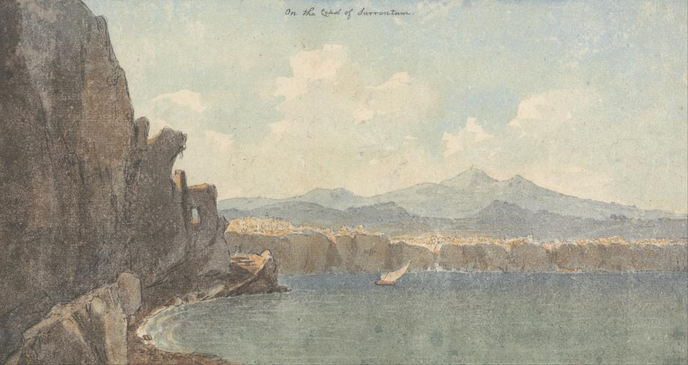 | Keywords: John Warwick Smith - On the Coast of Sorrentum - Google Art Project.jpg Cumberland 1749 London 1831 John male 2336343 Warwick Smith British 1749 - 1831 /collection/yale-center-for-british-art/artwork/on-the-coast-of-sorrentum-john-warwick-smith/2451770/ John Warwick Smith Attributed to /artist/john-smith/4130065/ 4130065 /collection/yale-center-for-british-art/ Yale Center for British Art 2305845 http //britishart yale edu/ 2/24/2012 12 26 09 AM /collection/yale-center-for-british-art/artwork/on-the-coast-of-sorrentum-john-warwick-smith/2451770/ 1764 undated clouds cliffs mountains coast sailboat landscape Watercolor over graphite on medium slightly textured cream laid paper 143 2451770 False 1831 3/25/2012 8 16 17 PM YCBA/lido-TMS-8249 http //collections britishart yale edu/vufind/Record/1671093 Yale Center for British Art Paul Mellon Collection drawing 1760 1840 London Creation w267 x h143 cm undated False 1 88235294117647 Item on-the-coast-of-sorrentum-john-warwick-smith On the Coast of Sorrentum o 267 Inscribed in gray ink upper center On the Coast of Surrentum ; in graphite on old card support since removed Coast of Surrentum Bay of Naples J Smith and 3007 ; in gray ink verso center JKS Smith 99 ; in graphite lower right D 3007 Not on View Watercolor over graphite on medium slightly textured cream laid paper clouds cliffs mountains coast sailboat landscape special url_id NwEJlr4y3lF3fg PD-old-100-1923 1831 John Warwick Smith Google Art Project works by John Warwick Smith Sorrento |
