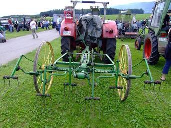 Keywords: JohnDeere Lanz Gerät.jpg Gabelheuwender von John Deere-Lanz Deutschland John Deere-Lanz 6-fork hay tedder in Germany own 2006-08 Späth Chr user ChiemseeMan John Deere-Lanz vehicles Fork tedders Rear views of tractors