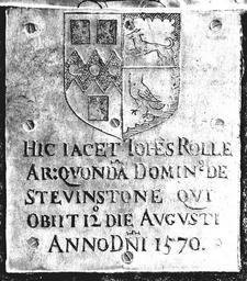 | Keywords: JohnRolleBrass1570StGilesInTheWoodDevon.JPG Monumental brass of John Rolle Esq d 1570 of Stevenstone inlaid in floor of south aisle parish church of St Giles in the Wood Devon Originally on his 2 1/2 foot high chest tomb in the chancel as reported by John Prince in his Worthies of Devon 8 7 1/4 Photo in black white negative image Own photo 2012 photo by Lobsterthermidor <span class signature-talk >talk</span> 19 28 23 November 2012 UTC Interior of St Giles in the Wood Church monuments in Devon Rolle arms Ford arms |
