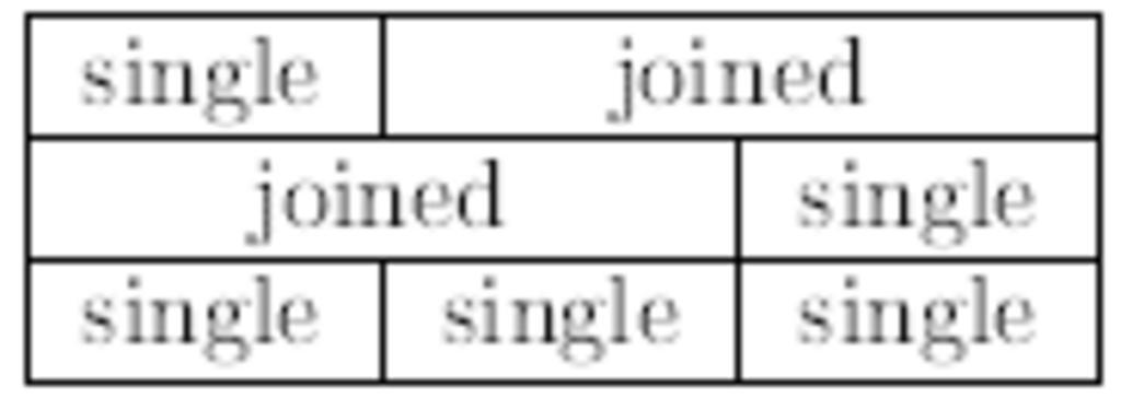 Keywords: Joined-cell-table.png en A table with horizontal joined cells created using LaTeX with the following code \begin tabular c c c \hline single \multicolumn 2 c duble \tabularnewline \hline single single single\tabularnewline \hline \multicolumn 2 c duble single\tabularnewline \hline \end tabular he טב ה ע תאי מאוחדי אופקית נוצרה ב אטך ע י הקוד \begin tabular c c c \hline single \multicolumn 2 c duble \tabularnewline \hline single single single\tabularnewline \hline \multicolumn 2 c duble single\tabularnewline \hline \end tabular אני יצרתי Amit Kenny 8/8/2011 Cc-zero LaTeX |