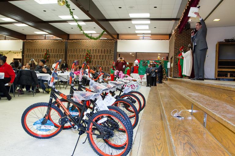 | Keywords: Joint base volunteers, police and Toys for Tots help disadvantaged youth 131218-N-WY366-001.jpg en D C Mayor Vincent Gray addresses a Disadvantaged Youth Holiday Party sponsored by the Metropolitan Police Department ™s Seventh District on Dec 18 in the District of Columbia's Ward 8 Military and civilian personnel and their families living or working at Joint Base Anacostia-Bolling JBAB volunteered and helped make the Christmas holiday season more joyful for nearly 300 youth in the District of Columbia ™s Ward 8 The JBAB volunteers helped serve food to the children pass out gifts and help with the distribution of 80 bicycles donated to the Marine Corps Foundation ™s Toys for Tots program for the neediest of the children The JBAB-based U S Air Force rock band Max Impact kicked the event off with energetic holiday music that quickly had children on their feet and dancing Santa and Mrs Claus arrived at the event by police helicopter where they were met by Rudolph the Red-nosed Reindeer and Frosty the Snowman Gray stopped by to visit with the children and wish them a merry Christmas 2013-12-18 Lt Cmdr Jim Remington https //www dvidshub net/image/1142693 131218-N-WY366-001 2013-12-20 19 14 WASHINGTON DC US PD-USGov-Military-Navy Joint Base Anacostia-Bolling Images from DoD uploaded by Fæ |