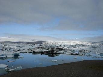 Keywords: Jokulsaarlon10.JPG Jökulsáarlón Iceland Own 2007-06-24 TommyBee Jökulsárlón Breiðamerkurjökull Medial moraines Esjufjöll Moraines in Iceland Jökulsárlón in 2007
