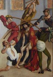 | Keywords: Jörg Breu01.jpg The Crown of Thorns 1502 by Jörg Breu 1475-1537 ; Panel in the Melk altar; museum of the Melk Abbey Austria own 2006-06-23 Photo Georges Jansoone Artwork Creator Jörg Breu d Ä own photo PD-old-100 Jörg Breu d Ä Paintings of Jesus Christ being crowned with thorns |