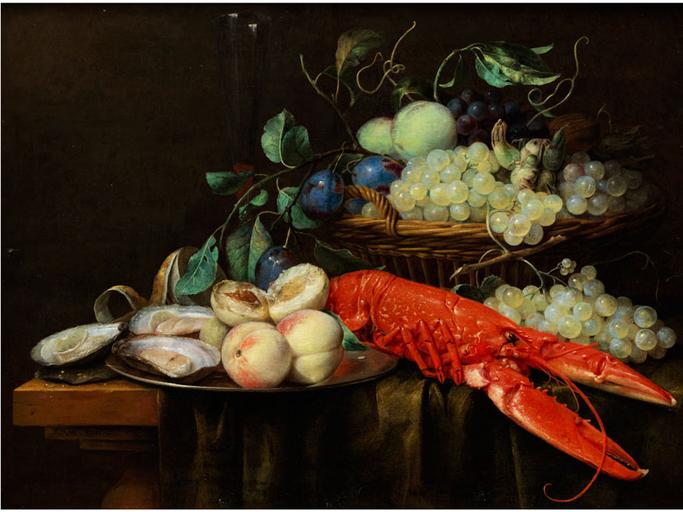 | Keywords: Joris van Son - Still life with fruit basket, lobster and oysters.jpg Artwork creator Joris van Son en Still life with fruit basket lobster and oysters Oil canvas cm 49 65 1660 https //www hampel-auctions com/a/Joris-van-Son-1623-Antwerpen-1677 html a 104 s 485 id 532399 q joris 20van 20son At Hampel 7 April 2016 Munich lot 189 signed bottom left PD-old-100 Paintings by Joris van Son Baroque still life paintings of fruit Oil still-life paintings Paintings of lobsters Still-life paintings with oysters |