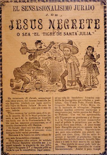 | Keywords: José Guadalupe Posada - The very Sensational Plot of Jesús Negrete, a.k.a., The Tiger of Santa Julia - Google Art Project.jpg Direct typographic print 1852 Aguascalientes 1852 1913 Mexico City 1913 José Male 548027 Guadalupe Posada Mexican 1852 - 1913 /collection/museo-nacional-de-arte/artwork/the-very-sensational-plot-of-jesus-negrete-aka-the-tiger-of-santa-julia-jose-guadalupe-posada/559152/ 137 José Guadalupe Posada painter /artist/jose-guadalupe-posada/4130354/ 4130354 /collection/museo-nacional-de-arte/ Museo Nacional de Arte 355161 http //www munal com mx/ 12/21/2011 7 25 25 PM /collection/museo-nacional-de-arte/artwork/the-very-sensational-plot-of-jesus-negrete-aka-the-tiger-of-santa-julia-jose-guadalupe-posada/559152/ Direct typographic print Constituve Collection 250 559152 False complete 3/24/2012 3 47 46 AM 16285 http //www munal com mx/rights html Museo Nacional de Arte INBA Print w170 x h250 mm False 0 693359375 http //www munal com mx/rights html Object the-very-sensational-plot-of-jesus-negrete-aka-the-tiger-of-santa-julia-jose-guadalupe-posada The very Sensational Plot of Jesús Negrete a k a The Tiger of Santa Julia v 170 El sensacionalismo jurado de Jesús Negrete o sea El Tigre de santa Julia Constituve Collection Direct typographic print special url_id mAHoTEX15t-qVA PD-old-100-1923 1913 José Guadalupe Posada Google Art Project works by José Guadalupe Posada 20th-century prints |