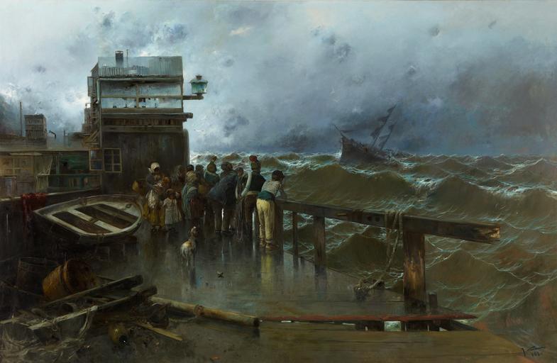 Keywords: José Navarro Llorens - Amenaza de naufragio.jpg Artwork creator José Navarro Llorens 1894 Oil on canvas cm 175 270 Museo Carmen Thyssen accession number CTB 1997 44 object history credit line http //www carmenthyssenmalaga org/es/obra/120 Colección Carmen Thyssen-Bornemisza en préstamo gratuito al Museo Carmen Thyssen Málaga PD-old-auto-1923 1923 José Navarro Llorens Paintings in the Museo Carmen Thyssen Málaga Shipwrecks in art Oil paintings of seascapes Group portrait paintings 1894 paintings 19th-century paintings in Andalusia |