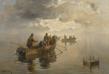 View Original:Josef_Wopfner_-_Chiemseefischer_im_dunstigen_Licht_am_frühen_Morgen.jpg (1200x811)