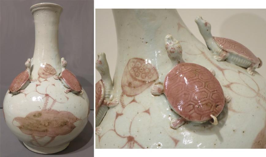 Keywords: Joseon dynasty globular bottle with turtle design, Honolulu Museum of Art 4340.jpg Joseon dynasty globular bottle with turtle design late 19th-early 20th century porcelain with copper oxide underglaze decoration Honolulu Museum of Art accession 4340 photo 2015 own Hiart <span class signature-talk ></span> 07 05 21 October 2014 UTC Cc-zero Joseon dynasty porcelain in the Honolulu Museum of Art Red and white porcelain |