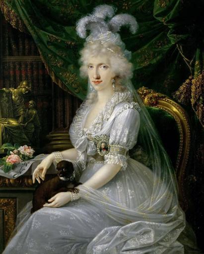 | Keywords: Joseph Dorffmeister 001.jpg Luise Marie Amelie Theresia von Bourbon Prinzessin von Neapel-Sizilien 1773-1802 Gemahlin von Ferdinand III von Toskana an einem Tisch sitzend Kniestück Luisa Maria Amelia Teresa of Naples and Sicily Princess of Naples and Sicily 1773-1802 Grand Duchess Consort of Tuscany wife of Archduke Ferdinand III of Tuscany Louise Marie Amélie Thérèse de Bourbon princesse de Naples et Sicile 1773-1802 grand ™duchesse consort d ™Autriche-Toscane épouse de l ™archiduc Ferdinand III d ™Autriche-Toscane Luisa Maria Amelia Teresa di Borbone Principessa di Napoli e Sicilia 1773-1802 1797 Oil on canvas cm 115 5 95 ; with frame cm 136 116 10 Institution Kunsthistorisches Museum accession number GG_8792 http //bilddatenbank khm at/viewArtefact id 2536 Giuseppe Dorffmeister Fecit 1797 signature la object history Primogeniturfideikomiss other versions <gallery>Joseph Dorffmeister 002 jpg pendant of </gallery> PD-old-100 DEFAULTSORT 1797; Luisa of Naples and Sicily Paintings by Joseph Dorffmeister in the Kunsthistorisches Museum Princess Luisa of Naples and Sicily 1790s dresses 1790s paintings in Italy 1797 oil on canvas paintings Male 1797 portrait paintings 18th-century cabinet portraits 18th-century oil portraits of sitting women at three-quarter length 18th-century portrait paintings in the Kunsthistorisches Museum 18th-century portrait paintings with dogs Chairs in portrait paintings Depictions of portrait miniatures in paintings Feathered headdresses in art female Females with pearl bracelets in art Females with pearl earrings in art Females with white dresses in art Green drapery in portrait paintings Portrait paintings of females with flowers Portrait paintings of sitting women with arms resting on tables Portrait paintings of women with dogs sitting on laps Statuettes in portrait paintings Tassels in portrait paintings 18th-century women looking at viewer in art |