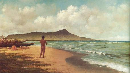 Keywords: Joseph Dwight Strong - 'Hawaiians at Rest, Waikiki', oil on canvas, c. 1884.jpg en Hawaiians at Rest Waikiki oil on canvas painting by Joseph Dwight Strong c 1884 Severson Don R Finding Paradise Island Art in Private Collections University of Hawaii Press 2002 Joseph Dwight Strong ~ 1884 DEFAULTSORT Strong PD-Art Native Hawaiians in art Hawaii in paintings Joseph Dwight Strong Historical images of Waikiki Diamond Head in art Beached canoes in art Outrigger canoes in art Canoes of Hawaii in art People on Waikiki Beach 1884 in Hawaii People at the beach in art