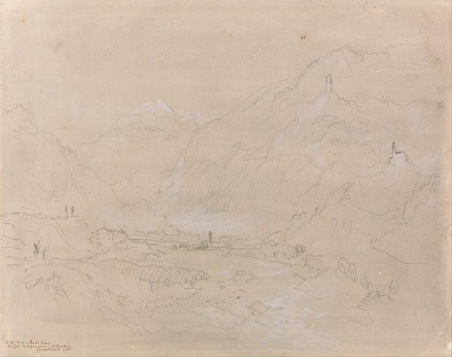 | Keywords: Joseph Mallord William Turner - Mountainous Landscape with Town in Valley - Google Art Project.jpg  ~ 1840 London 1775 Chelsea 1851 Joseph male 2322909 Mallord William Turner British 1775 - 1851 /collection/yale-center-for-british-art/artwork/mountainous-landscape-with-town-in-valley-joseph-mallord-william-turner/2439004/ Joseph Mallord William Turner Artist /artist/j-m-w-joseph-mallord-william-turner/4127042/ 4127042 /collection/yale-center-for-british-art/ Yale Center for British Art 2305845 http //britishart yale edu/ 2/23/2012 10 28 50 PM /collection/yale-center-for-british-art/artwork/mountainous-landscape-with-town-in-valley-joseph-mallord-william-turner/2439004/ 1835 ca 1840 town cliffs mountains trees landscape Graphite gray wash and white chalk on medium slightly textured cream wove paper 232 2439004 False 1845 3/25/2012 7 47 18 PM YCBA/lido-TMS-5506 http //collections britishart yale edu/vufind/Record/1669783 Yale Center for British Art Paul Mellon Collection drawing 1830 1850 Chelsea Creation w292 x h232 cm ca 1840 False 1 2641975308642 Item mountainous-landscape-with-town-in-valley-joseph-mallord-william-turner Mountainous Landscape with Town in Valley m 292 Inscribed in pen and brown ink lower left J M W T Late time Slight but precious J Ruskin Brentwood 1880 ; in graphite verso upper center B 1 underlined ; in graphite verso lower center 1937 590 ; in graphite verso lower right /E Inscription _Marks Yale University Gallery of Fine Arts collector's mark Inscription _Signed_and_Dated Not signed not dated Not on View Graphite gray wash and white chalk on medium slightly textured cream wove paper town cliffs mountains trees landscape special url_id rQF-syHoX7npQg PD-old-100-1923 1851 Drawings by Joseph Mallord William Turner Google Art Project works by Joseph Mallord William Turner |