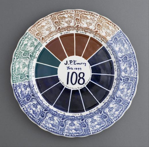 | Keywords: Joseph P. Emery - Sample plate - Google Art Project.jpg en Joseph P Emery - Sample plate 1899 https //www google com/culturalinstitute/asset-viewer/sample-plate/xQFCqROohgHv8A projectId art-project Joseph P Emery Google Art Project Joseph 6851443 P Emery /collection/cooper-hewitt-national-design-museum/artwork/sample-plate-joseph-p-emery/6859059/ 224632 Joseph P Emery /artist/joseph-p-emery/29088215/ 29088215 /collection/cooper-hewitt-national-design-museum/ Cooper-Hewitt National Design Museum 3644669 http //www cooperhewitt org/ /collection/cooper-hewitt-national-design-museum/artwork/sample-plate-joseph-p-emery/6859059/ 1899 1899 Glazed porcelain 6859059 False 1899 2003-5-1 http //collection cooperhewitt org/view/objects/asitem/id/224632 Museum purchase from Charles E Sampson Memorial Fund Sample plate 1890 1900 1899 False 1 01587301587302 Object sample-plate-joseph-p-emery Sample plate s H x diam 1 9 x 26 cm 3/4 x 10 1/4 in Multiple Choice From Sample To Product Cooper-Hewitt National Design Museum New York NY November 9 2007 - September 10 2008 Painted in blue glaze in center well of plate J P Emery / Feb 1899 / 108 ; From 6145 To 6153 Fired in Slosh Glosh Oven On underside of plate painted in underglaze blue J P Emery / Grange St Color Works / Cobridge / design of wavey vertical line between 2 wavey horzontal lines; stamped near center 26 upside down / FURNIVALE / asterisk; stamped in lower left quadrant unclear mark in circular format--MADE unclear word / image of anchor / E unclear letters Glazed porcelain PD-old-70 PD-1923 Original upload log en wikipedia ftcg page en wikipedia Joseph_P _Emery_-_Sample_plate_-_Google_Art_Project jpg wikitable - 22 02 27 January 2013 3 001 × 2 952 2 777 935 bytes Dcoetzee w en <nowiki> Google Art Project wiki_artist </nowiki> Files uploaded by Yann Forget Plates |