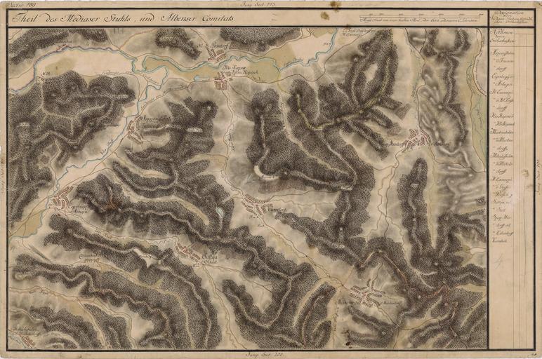 Keywords: Josephinische Landaufnahme pg189.jpg wikitable style margin 1em auto 1em auto width 80 Name shown on the map<br>Nume din hartă Administrative unit<br>Unitate administrativă Romanian name<br>Numele românesc Hungarian name<br>Numele unguresc German name<br>Numele german Country today<br>Ţara de astăzi - Aszszony Falva Frauendorf Medgyes szék<br> Zwei Stühle <br>Mediascher Stuhl<br>Schelker Stuhl<br> Două Scaune <br>Scaunul Mediaşului<br>Scaunul Şeica Axente-Sever Asszonyfalva Frauendorf Romania - Kl Prosdorf Szeben szék<br>Hermannstädter Stuhl<br>Scaunul Sibiului Târnăvioara Kisekemezõ Kleinpropstdorf Romania - Kis Kapus Klein Kopisch Medgyes szék Copşa Mică Kiskapus Kleinkopisch Romania - Szasz Ibisdorff Eibesdorf Medgyes szék Ighişu Nou Szászivánfalva Eibesdorf Romania - Martontelke v Martosdorf Fehér megye<br>Unterweißenburger Komitat<br>Comitatul Alba de Jos Motiş Martontelke Mortesdorf Romania - Wurmloch Medgyes szék Valea Viilor Nagybaromlak Wurmloch Romania - Sállya v Schall Medgyes szék Şoala Sálya Schaal Romania - Egerbegy v Arbegen Medgyes szék Agârbiciu Szászegerbegy Arbegen Romania - Mihályfalva v Michelsdorf Fehér megye Boarta Mihályfalva Michelsdorf Romania - Grand Duchy of Transylvania 1769-1773 Josephinische Landaufnahme pg 189 Harta Iosefină a Transilvaniei 1769-1773 Josephinische Landaufnahme pg 189 Österreichisches Staatsarchiv Kriegsarchiv B IX 715 Original-Aufnahmskarte des Grossfürtenthums Siebenbürgen Geometrisch aufgenommen und bearbeitet in den Jahren 1769 bis 1773 unter der Direction des Obristen von Fabris theils durch Officiere des grossen Feld-Generalstabes theils auch von verschiedenen aus dem in Siebenbürgen bequartierten Regimentern zu diesem Geschäfte beigezogenen Individuen Historische Militärkarte der österreichisch-ungarischen Monarchie 1769-1773 PD-old-100 Clickable Map of the Grand Duchy of Transylvania GrandDuchyOfTransylvania 1769-73 Josephinische Landaufnahme |