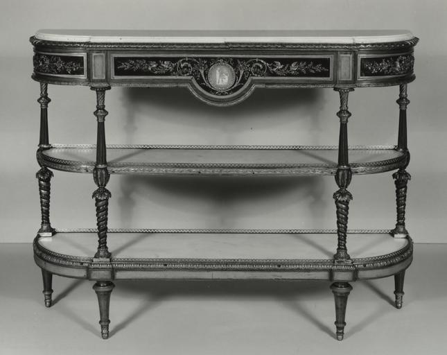 | Keywords: Josiah Wedgwood - Console - Walters 6518.jpg Adam Weisweiler was one of a number of German furniture-makers who moved to France during the reign of Louis XVI He was celebrated for his delicate furniture which was acquired by Queen Marie Antoinette various members of the Bonaparte family and by the Prince of Wales This console or side table bears a circular medallion showing a Sacrifice to Peace manufactured in England by Josiah Wedgwood and exported to France late Other date century 18 rosewood marble ormolu painted tin ceramic cm 88 1 122 accession number 65 18 1552 Baron Alfred de Rothschild Jacques Seligmann Co New York Henry Walters Baltimore date of acquisition unknown by purchase Walters Art Museum Henry Walters Acquired by Henry Walters place of origin England United Kingdom Walters Art Museum license Josiah Wedgwood and Sons Media contributed by the Walters Art Museum needs category review Furniture in the Walters Art Museum console tables |