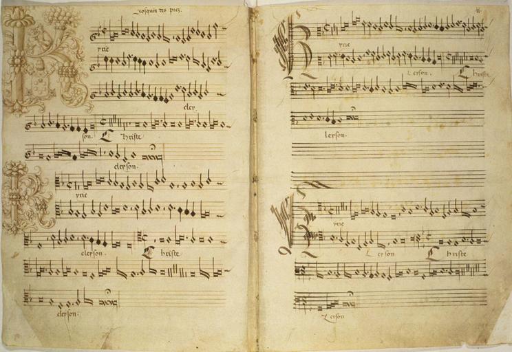 Keywords: Josquin Missa BV Kyrie.jpg Early 16th century manuscript of Missa de Beata Virgine by Josquin des Prez; 2D representation en wikipedia From http //www ibiblio org/expo/vatican exhibit; also available at U S Library of Congress Manuscript is Rome Biblioteca Apostolica Vaticana MS Cappella Sistina 45 folios 1v-2r 2007-03-31 Antandrus wikipedia en PD-old original upload log page en wikipedia Josquin_Missa_BV_Kyrie jpg 2007-03-31 19 19 Antandrus 1345×925×8 161134 bytes <nowiki>early 16th century manuscript of Missa de Beate Virgine by Josquin des Prez; PD-art; 2D representation</nowiki> Josquin des Prez Musical manuscripts Kyrie Facsimiles of mensural notation Cappella Sistina manuscripts |