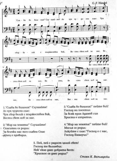 | Keywords: Joy To The World in Bulgarian by Stoian Vatlarski, music - Händel.jpg Uploaded with en wp UW marker 2013 03 23 Bulgarian lyrics and notation for the Christmas Song Joy to the World Original publication unknown<br/> Immediate source I was given work on a paper copy before many years date Стоян Ватла ски<br/> Life time Mar 7 1860 - Aug 30 1935 copyright in Bulgaria expire after 70 years after famous author's death ;Other information article about text author http //bg wikipedia org/wiki/ D0 A1 D1 82 D0 BE D1 8F D0 BD_ D0 92 D0 B0 D1 82 D1 80 D0 B0 D0 BB D1 81 D0 BA D0 B8 copyright in Bulgaria expire after 70 years after famous author's death PD-old-70-1923 Uncategorized 2013 March 23 |