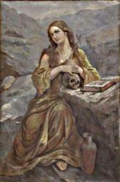 | Keywords: Józef Bałzukiewicz ŚW. MARIA MAGDALENA.jpg ru П едположительно икона авто ства Юзефа Балзукевича pl OBRAZ - ŚW MARIA MAGDALENA Czas powstania po 1912 roku Autor Józef Bałzukiewicz Wilno Materiał płótno olej - obraz; drewno snycerka złocenia - rama Umiejscowienie w kościele pole główne nastawy ołtarza bocznego p w Św Maryi Magdaleny lewa nawa Obraz powstał staraniem proboszcza dobrzyniewskiego ks Antoniego Świla /1912 -1924/ Postać młodej kobiety na tle krajobrazu Święta siedząca na skałach przy skalnym pulpicie widoczna en face z głową przechyloną na prawe ramię rękami złożonymi na czaszce w lewej dłoni trzymająca krzyż Twarz owalna zamyślona oczy wzniesione ku górze bujne rude włosy sfalowane opadające na ramiona Szaty długie sfałdowane Suknia ugrowa z szerokimi rękawami z głębokim cięciem odsłaniającym szyję płaszcz ugrowo brązowy opadający fałdami spod którego widoczna bosa stopa Na skale rozłożona księga Przy stopach stojący dzban W oddali szarobrązowy pejzaż z odcieniami zieleni i fioletu Skały szaroniebieskie szare i błękitne Rama drewniana profilowana złocona с 1912 http //www dobrzyniewokoscielne pl/Zabytki/Zabytki1 aspx Józef Bałzukiewicz other versions PD-old-70-1923 Uploaded with UploadWizard Józef Bałzukiewicz |