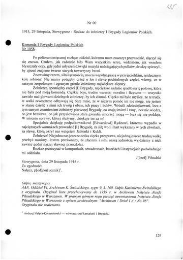 | Keywords: Józef Piłsudski - Rozkaz do żołnierzy I Brygady Legionów Polskich - 701-001-100-135.jpg  Piłsudski Institute document pl Rozkaz do żołnierzy I Brygady Legionów Polskich 1915-11-29 pl Rozkaz z okazji połączenia oddziałów I Brygady pl Józef Piłsudski - listy; I Brygada pl Letter Rydz-Śmigły Edward <br/> Nałęcz-Korzeniowski Andrzej Stowygrosz <br/> Jabłonka <br/> Kukla 701/1/100/135 701 180/3154 3579 1 PD-old-auto-unpublished 1935 yes Collections of Józef Piłsudski Institute of America from 1915 Józef Piłsudski in 1915 Letters by Józef Piłsudski Military documents of Second Polish Republic |