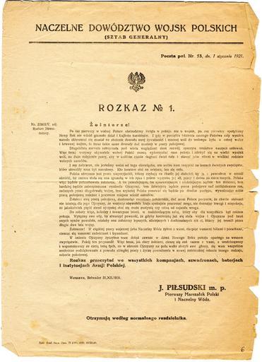 | Keywords: Józef Piłsudski - Rozkaz Józefa Piłsudskiego do żołnierzy Wojska Polskiego - 701-001-039-006.jpg  Piłsudski Institute document pl Rozkaz Józefa Piłsudskiego do żołnierzy Wojska Polskiego 1920-12-31 pl Belweder; Pierwszy Marszałek Polski i Naczelny Wódz pl Speech; Proclamation Warszawa 701/1/39/6 701 180/1732 1887 Archiwum Józefa Piłsudskiego 1 PD-old-auto-1923 1935 For background information see PD in Poland US yes Collections of Józef Piłsudski Institute of America from 1920 Józef Piłsudski in 1920 Polish-Soviet War Writings of Józef Piłsudski Military documents of Second Polish Republic |