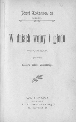 Keywords: Józef Tokarzewicz - W dniach wojny i gÅ‚odu (strona tytuÅ‚owa).jpg Józef Tokarzewicz - strona tytuÅ‚owa wspomnieÅ„ W dniach wojny i gÅ‚odu 1900 1900 http //grodziszczanin blogspot com/2013/03/jozef-tokarzewicz-hodi html - strona tytuÅ‚owa wspomnieÅ„ http //91 238 85 34/book_reader php p 6567 s 1 W dniach wojny i gÅ‚odu Józef Tokarzewicz 1841 “1919 PD-Old Józef Tokarzewicz |