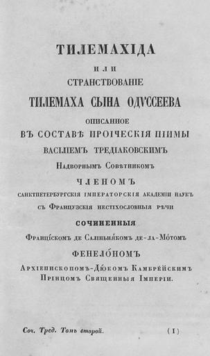 Keywords: Тилемахида.jpeg ru Титульный лист Тилемахиды том вто ой 1849 http //dlib rsl ru/viewer/01003862880 page 7 В К Т едиаковский other versions PD-old-70-1923 Vasily Trediakovsky Uploaded with UploadWizard