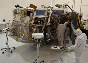 Keywords: jpss- 1 jpss1 nesdis noaa satellites noaasatellites satellite December 9, 2015 The solar panel array on NOAA’s polar-orbiting satellite JPSS-1 spacecraft successfully completed its fit check at Ball Aerospace and Technologies Corp. The solar array is folded up at launch and deploys on orbit, resembling a giant black wing and generating more than 2775 watts of power for NOAA’s JPSS-1 satellite. Photovoltaic cells in the solar array derive electricity from sunlight and convert solar radiation into direct current electricity. The JPSS-1 photovoltaics in the solar panel array will power the entire satellite including all of the instruments, computers, data processors, and telecommunications equipment. Credit: Ball Aerospace and Technologies December 9, 2015 The solar panel array on NOAA’s polar-orbiting satellite JPSS-1 spacecraft successfully completed its fit check at Ball Aerospace and Technologies Corp. The solar array is folded up at launch and deploys on orbit, resembling a giant black wing and generating more than 2775 watts of power for NOAA’s JPSS-1 satellite. Photovoltaic cells in the solar array derive electricity from sunlight and convert solar radiation into direct current electricity. The JPSS-1 photovoltaics in the solar panel array will power the entire satellite including all of the instruments, computers, data processors, and telecommunications equipment. Credit: Ball Aerospace and Technologies |