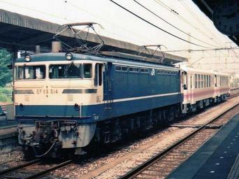 Keywords: JRF-EF65514-moving-KR500.jpg JR Freight class EF65 electric locomotive EF65 515 hauling Kashima Railway type KR-500 diesel cars through Shinmachi Station Own spring 1989 Cassiopeia_sweet 1989 in rail transport in Japan EF65 500 Kashima Railway KR-500 Shinmachi Station Gunma Transport of rolling stock |