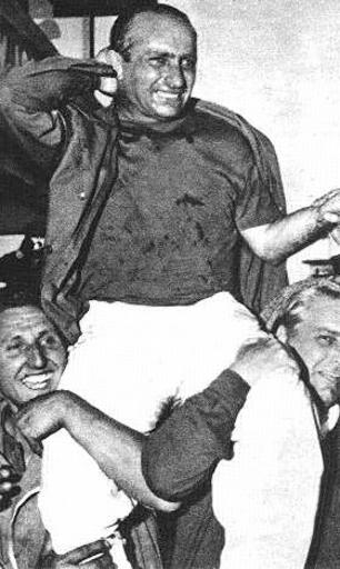 | Keywords: Juan Manuel Fangio Nurburgring 1957.jpg es Juan Manuel Fangio es llevado en andas tras su triunfo en Nürburgring en 1957 http //www f1-web com ar/fangioasecas htm Author 1957 250 px PD-AR-Photo Juan Manuel Fangio in 1957 Black and white photographs of automobile racing in 1957 1957 German Grand Prix Black and white portrait photographs of people associated with automobile racing | ||||