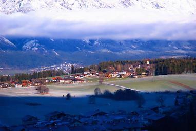 Keywords: judensteing austria scenic sky clouds fog mountains forest trees village buildings autumn fall valley nature outside country countryside landscape