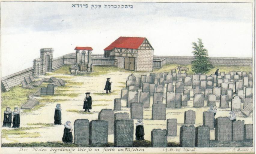 | Keywords: Jüdischer Friedhof Fürth 1705.jpg de Alter Jüdischer Friedhof in Fürth kolorierter Kupferstich von 1705 Orginalbeschriftung Friedhof wörtlich Haus der Gräber in der heiligen Gemeinde abgekürzt Firda hebräisch בית הקברות בקהי ה קדושה פירדא ; Der Juden begräbnisse wie sie in Fürth anzusehen 3 1/2 St bej Nürnb Stein bei Nürnberg Sammlung Superikonoskop Johann Alexander Boener 1647-1720 1705 PD-old-100 Alter Jüdischer Friedhof Fürth Johann Alexander Böner Copper engravings of german people Jewish cemeteries in art Jewish ceremonial halls in Germany History of Fürth |