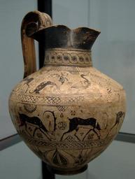 Keywords: Jug griffins ibexes Staatliche Antikensammlungen 449.jpg Ostgriechische Kanne um 630 v Chr Schulterfries Löwengreif Mitte äsende Steinböcke Unten Blüten-Knospenkette Oberfläsche der Tons veredelt zur Elfenbeinweiss Eastern Greece jug ca 630 BC Top Griffins Center grazing ibexes Bottom bloom buds Jarre de Grèce de l'Est v 630 av J -C Frise supérieure griffons Frise centrale bouquetins en train de brouter Frise inférieure fleurs en bouton Museum Staatliche Antikensammlungen Room 1 object history credit line accession number Inv 449 User Bibi Saint-Pol own work 2007-02-09 other versions Griffins in ancient Greek pottery Ibexes in ancient Greek pottery Ancient Greek pottery oinochoes Greek Orientalizing pottery in the Staatliche Antikensammlungen Staatliche Antikensammlungen - Room 1 630s BC |