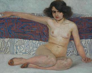 Keywords: Juliaan de Vriendt - Nude.jpg Artwork Creator Juliaan De Vriendt 1864-1935 Oil on canvas size cm 80 2 100 3 accession number object history credit line At Simonis en Buunk Art Dealers http //www simonis-buunk nl/collectie/vergroting/Juliaan_de_Vriendt_17827 aspx PD-old-100 Juliaan De Vriendt Images from Simonis-Buunk Paintings of nude sitting females in the 20th century |
