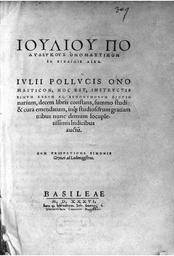 Keywords: Julius Pollux - Onomasticon - 1536 - Titul.png ru Юлий Поллукс Ономастикон Титульный лист издания 1536 года http //books google com/ ru Юлий Поллукс II century AD PD-old Julius Pollux
