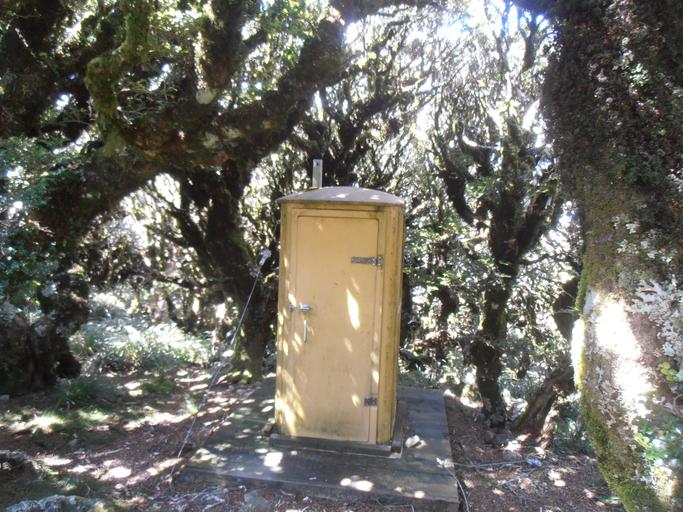 Keywords: Jumbo Hut old toilet yellow.jpg One of the two old toilets of the Jumbo Hut; still useable 2016-02-02 own Sarang Jumbo Hut Hiking shelter toilets in New Zealand