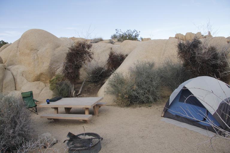 Keywords: joshua tree national park joshuatreenationalpark joshua tree joshuatree national park nationalpark boulders rocks camping family jumbo rocks jumborocks campground picnic tent firepit outdoor Centrally located, Jumbo Rocks Campground offers great opportunities for scrambling around the boulders Joshua Tree National Park is known for. Skull Rock Nature Trail loops near the campground, leading visitors among the rock features and native plants of the area. There are 124 individual/family sites in this campground. All are first come, first served. Site 122 is wheelchair accessible. For more information about camping at Joshua Tree National Park, visit www.nps.gov/jotr/planyourvisit/camping.htm. NPS Photo. Centrally located, Jumbo Rocks Campground offers great opportunities for scrambling around the boulders Joshua Tree National Park is known for. Skull Rock Nature Trail loops near the campground, leading visitors among the rock features and native plants of the area. There are 124 individual/family sites in this campground. All are first come, first served. Site 122 is wheelchair accessible. For more information about camping at Joshua Tree National Park, visit www.nps.gov/jotr/planyourvisit/camping.htm. NPS Photo.