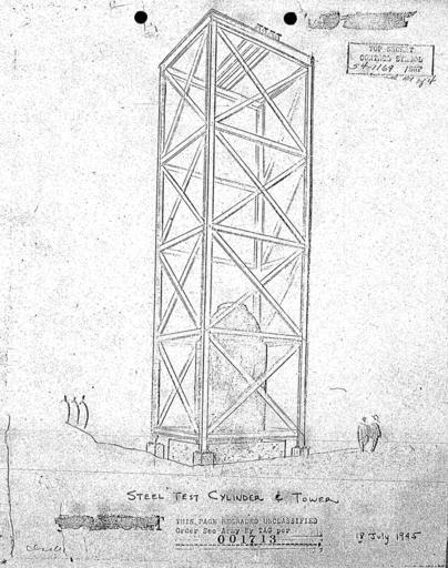 | Keywords: Jumbo sketch (Trinity).jpg Sketch of the Jumbo test device and tower setup from the Trinity test Source Scanned from document in File 4 TRINITY Test at Alamogordo July 16 1945 in Correspondence top secret of the Manhattan Engineer District 1942-1946 microform Washington D C National Archives Microfilm Publications 1980 File from the National Archives developed by an employee of the Manhattan Project BadJPEG PD-USGov Trinity test | ||||