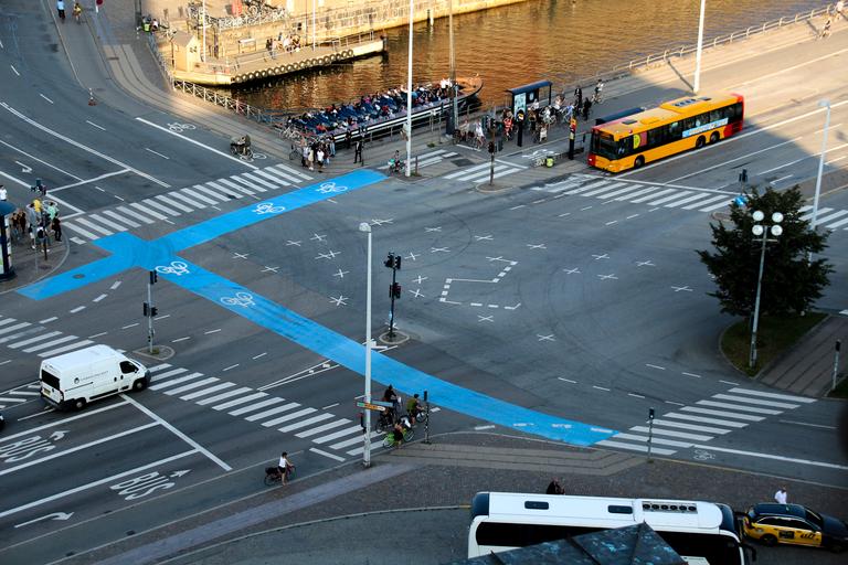 Keywords: junction traffic zebra crossing auto right of way main road turn road road network drive cycle path grey roadway city cycling cyclists pedestrian
