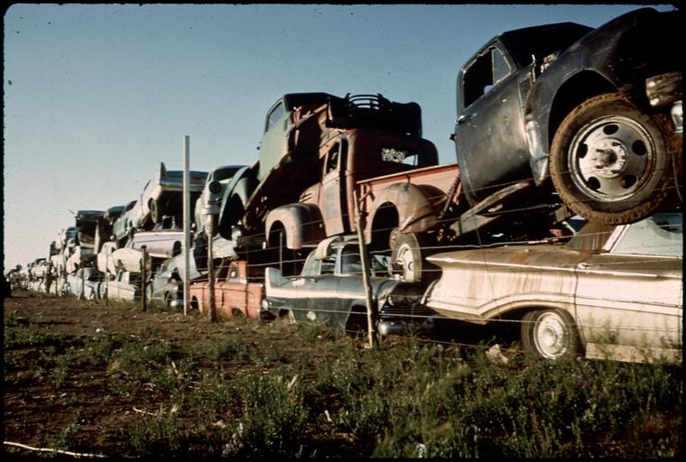| Keywords: JUNKED AUTOMOBILES ARE PILED THREE DEEP ALONG FENCE - NARA - 545340 colorcorr.jpeg Junked automobiles in Santa Fe New Mexico USA Picture with color correction General notes 545340 Local identifier 412-DA-2847 Environmental Protection Agency 12/02/1970 - Lyon Danny 1942- Photographer 1709309 <br /> Santa Fe Santa Fe county New Mexico United States North and Central America inhabited place 4201923 35 683 -105 93 <br /> Still Picture Records Section Special Media Archives Services Division NWCS-S National Archives at College Park 8601 Adelphi Road College Park MD 20740-6001 04/2016 original 05/1972 Record group Record Group 412 Records of the Environmental Protection Agency 1944 - 2006 Record group ARC 708 DOCUMERICA The Environmental Protection Agency's Program to Photographically Document Subjects of Environmental Concern compiled 1972 - 1977 Series ARC 542493 File unit File unit ARC Variant control numbers Agency-Assigned Identifier 048/27/002847<br /> NAIL Control Number NWDNS-412-DA-2847 Other versions <gallery> File JUNKED_AUTOMOBILES_ARE_PILED_THREE_DEEP_ALONG_FENCE_-_NARA_-_545340 tif tif File JUNKED_AUTOMOBILES_ARE_PILED_THREE_DEEP_ALONG_FENCE_-_NARA_-_545340 jpg jpg </gallery> NARA-cooperation PD-USGov Abandoned automobiles in the United States Automobiles in New Mexico 1972 Trucks in New Mexico 1972 Fences in New Mexico Waste in New Mexico Santa Fe County New Mexico 1972 in New Mexico NARA images of New Mexico |