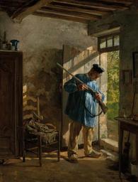 | Keywords: JurijSubic-Pred lovom.jpg assessments 1 Artwork Creator Jurij Šubic Slika Pred lovom prikazuje lovca ki pred s soncem obsijanimi vrati pregleduje puško Slika kaže na slikarjevo natančno opazovanje barvnih odbleskov igro sonca in sence trepetanje ozračja v barvnih tonih itd Šubic je sliko l 1883 kot prvi Slovenec razstavil v pariškem Salonu in z njo dosegel lepo priznanje 1883 oil canvas cm 87 65 5 Institution National Gallery of Slovenia NGS0455 PD-old-100 Paintings by Jurij Šubic 1883 paintings in Slovenia Hunting in Slovenia 19th-century paintings in the National Gallery of Slovenia 19th-century oil on canvas paintings in Slovenia Realist paintings in Slovenia Oil paintings of hunters People with firearms in art Double-barreled shotguns |
