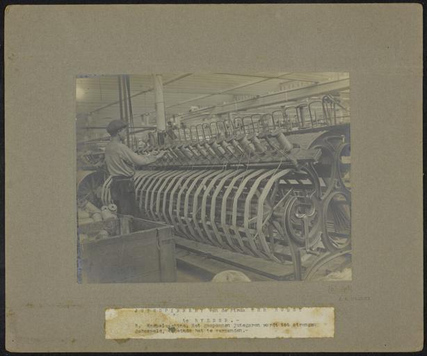 | Keywords: nationaal archief nationaal archief nationaalarchief man machine factory manmachinefactory factory machine sepia Beschrijving:  Haspelmachine bij jutespinnerij en -weverij fa. Ter Horst te Rijssen. Het gesponnen jutegaren wordt tot strengen gehaspeld  Datum: Circa 1919  Vervaardiger: J.D.Filarski  Formaat: 17.5 x 23.5 cm  Bestanddeelnummer: 2.24.03_2256_256-1277  Fotocollectie: Arbeidsinspectie  Auteursrechten: Nationaal Archief  Voor meer informatie over het Nationaal Archief: www.nationaalarchief.nl  Voor meer foto's uit deze en andere collecties, bezoek onze Beeldbank: beeldbank.nationaalarchief.nl/  U kunt ons helpen onze kennis van de fotocollecties te verrijken door tags en commentaren toe te voegen. Herkent u mensen of locaties of heeft u een bijzonder verhaal te vertellen bij één van de foto’s, laat dan een reactie achter (als u ingelogd bent bij Flickr) of stuur een mailtje naar: flickrthecommons@nationaalarchief.nl!   Beschrijving:  Haspelmachine bij jutespinnerij en -weverij fa. Ter Horst te Rijssen. Het gesponnen jutegaren wordt tot strengen gehaspeld  Datum: Circa 1919  Vervaardiger: J.D.Filarski  Formaat: 17.5 x 23.5 cm  Bestanddeelnummer: 2.24.03_2256_256-1277  Fotocollectie: Arbeidsinspectie  Auteursrechten: Nationaal Archief  Voor meer informatie over het Nationaal Archief: www.nationaalarchief.nl  Voor meer foto's uit deze en andere collecties, bezoek onze Beeldbank: beeldbank.nationaalarchief.nl/  U kunt ons helpen onze kennis van de fotocollecties te verrijken door tags en commentaren toe te voegen. Herkent u mensen of locaties of heeft u een bijzonder verhaal te vertellen bij één van de foto’s, laat dan een reactie achter (als u ingelogd bent bij Flickr) of stuur een mailtje naar: flickrthecommons@nationaalarchief.nl!    |
