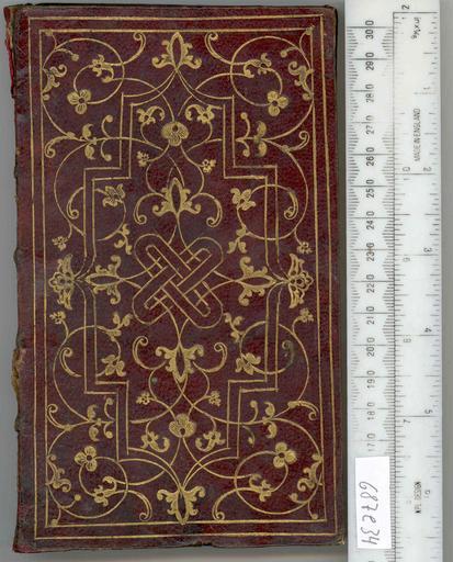 | Keywords: Juvenalis. Persius - Upper cover (6,87E+36).jpg Style Interlacing ribbon/strapwork; Caption Upper cover; Colour Brown; Edge Gilt exhibition history Decorative Technique Tooled in gold; Cover Material Goatskin includes morocco turkey etc Vellum pastedowns For other French 16c bindings see Marie-Pierre Laffitte Fabienne Le Bars Reliures royales de la Renaissance Paris 1999 c 1550 Paris bound for J Grolier by Grolier's last binder H M Nixon Bookbindings from the library of Jean Grolier p 64-65 n 126 Analogous examples J R Abbey Catalogue of valuable printed books and fine bindings 19-21 June 1967 p 174-175 lot 2070 on Origen De recta in deum fide dialogus Paris Audoenus Parvus 1556; Bibliothèque nationale de France Paris Des livres rares p 69 n 48; C G Boerner Leipzig Bucheinbände Katalog XXI n 21 pl IX; La reliure ancienne et moderne pl 94; T de Marinis Appunti p 140 n 73 pl CCLXIV on text Second livre d'Architecture par Jacques Androuet du Cerceau Paris 1561 Mostra storica della legatura artistica in Palazzo Pitti n 577 This craftsman produced covers in vellum too Librairie Sourget Chartres Manucrits enluminés et livres précieux Catalogue VI p 136 n 43 on Lucrèce De rerum natura libri sex a Dionysio Lambino Paris and Lyons Guillaume and Philippe Rouillé 1563 For his J Grolier bindings list see A Hobson Renaissance book collecting p 229 i Last Binder object history Text 1501; Venice; Unspecified object type Cc-zero place of creation Binding France place of discovery Unspecified British Library image http //www bl uk/catalogues/bookbindings/LargeImage aspx RecordId 020-000004926 ImageId ImageId 42068 Copyright BL Juvenalis Persius Uploaded with GWToolset Juvenalis Persius - Upper cover 6 87E+36 http //www webarchive org uk/bldatasets/bindings/6645_4 jpg Bookbinding 16th-century bookbinding British Library Bookbindings |