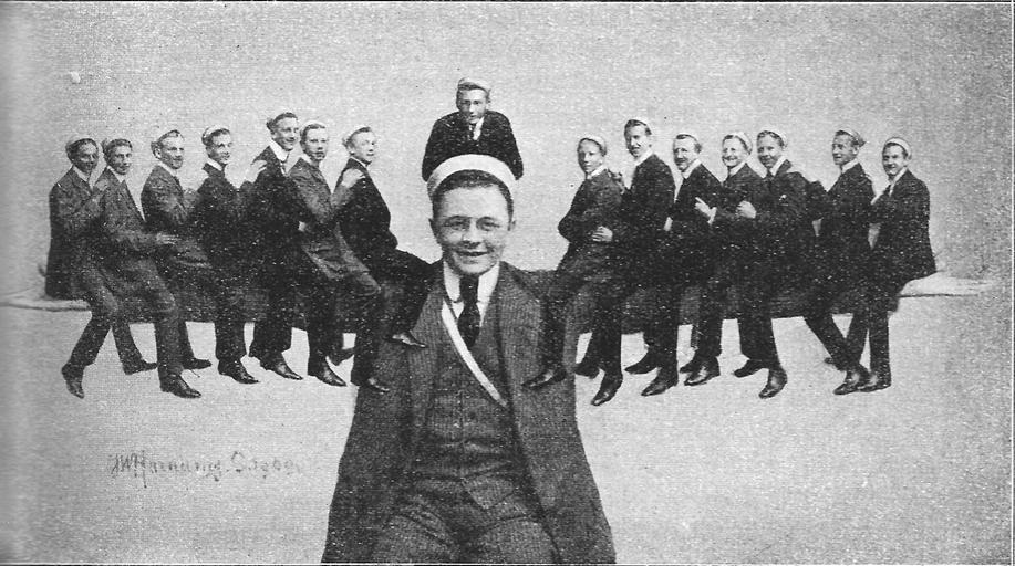 | Keywords: JW Hornung - Karl Dörner (FM) mit seinen Füchsen 1906 (TR479).jpg  de Karl Dörner FM mit seinen Füchsen Fotomontage In der Mitte Karl Dörner 15 3 1889 ; die Füchse von links nach rechts Kessel Wilhelm Dittmann 28 8 1889 Fritz Joseph 23 2 1889;   1916 Walter Brill 18 10 1889;   Juni 1919 Walter Menche 14 1 1890;   1 7 1916 Wilhelm Feldmann 11 3 1891 Ernst Wortmann 22 11 1888;   1936 Erich Bauer 24 3 1890 Kurt von Roy 10 7 1890 Erich Böttcher 29 11 1890 Schramm Erich Linke 23 11 1889;   29 /30 9 1914 Paul Schulte-Hermann 6 5 1890 Max Aßmann 21 7 1890 und Wilhelm Nebelung 27 1 1889 eingescannt aus Erich Bauer Die Tübinger Rhenanen Zeulenroda Oberreuter 1936 tatsächlich Ende 1937 Sommersemmester 1909 Creator Julius Wilhelm Hornung PD-old Julius Wilhelm Hornung - Photomontage Corps Rhenania Tübingen 1909 in Tübingen |