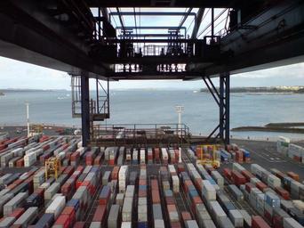| Keywords: K Crane Visit ZPMC In Ports of Auckland XIII.jpg View eastwards from under the counterweight rear engine housings of the cranes at Ports of Auckland in Auckland City New Zealand self-photographed 2008 Uploader -36 8452592 174 784863 Crane counterweights Photos taken by Ingolfson Ports of Auckland Container terminals in New Zealand Shanghai Zhenhua Port Machinery Company cranes Cranes of Ports of Auckland 2008 in New Zealand | ||||