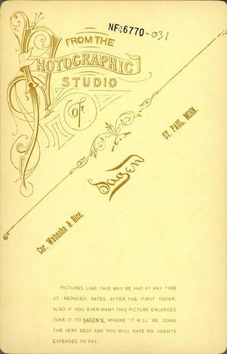 Keywords: Kabinettfotografi, Norskamerikanere, Norsk Folkemuseum NF.06770-031, bilde 2.jpg nb Kabinettfotografi av ukjent mann baksiden av kortet Norskamerikaner Fotografiet er kommet inn i forbindelse med Jeg fant jeg fant innsamlingen i 1962 Serien er fra norsk-amerikansk miljø Enkelte av fotografene har norskliknende navn en Cabinet card unknown male back of card Norwegian American 1890 NF NF 06770-031 kabinettfotografi-norsk-amerikanere-mann-i Sagen Minnesota St Paul USA / Norsk Folkemuseum <gallery> File Kabinettfotografi Norskamerikanere Norsk Folkemuseum NF 06770-031 bilde 1 jpg </gallery> PD-old Cabinet cards Norwegian Americans |