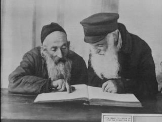 | Keywords: Kac 1924-10-19 Pinsk jews reading mishnah.jpg en 'Jewish Daily Forward' caption in Yiddish They get in a chapter of Mishnah in the synagogue In English Two venerable Jews poring over a Hebrew religious work From a photo essay entitled Pictures Of Present-Day Life In Pinsk Poland he כיתוב ביידיש בעיתון פאָרווערטס ה קוראי בפרק במשנה בבית הכנסת מאסופת תמונות תחת הכותרת תמונות ש חיי היומיו כיו בפינסק פו ין Archives of the YIVO Institute for Jewish Research New York Alter Kacyzne Published in New York Forverts on 19-Oct-1924 YIVO Institute for Jewish Research The Archives of the YIVO Institute for Jewish Research New York Image Kac 1924-10-19 Pinsk jews reading mishnah colored jpg Record ID 5295 Collection PO Catalog No F2953 Frame 27415 Pinsk Poland PD-Art Jewish culture Mishnah individual images Jewish people of Poland Judaism in Second Polish Republic Judaism in Lithuania |