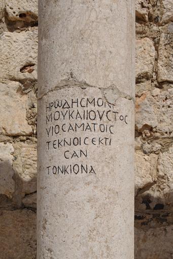 Keywords: Kafarnaum BW 21.jpg Ἡρῴδης ονίμου καὶ Ἰούστος υἱὸς ἅμα τοῖς τέκνοις ἔκτισαν τὸν κίονα Kafarnaum Synagoge Inschrift an einer Säule Herodes Sohn des Monimos und sein Sohn Justus errichteten gemeinsam mit den Kindern diese Säule Capernaum Synagogue inscription at a column Herod son of Monimos and his son Justus erected this column together with the children own 2010-09-16 Berthold Werner ImageNote 1 435 1128 1128 1006 2023 3034 2 Ἡρῴδης ονίμου καὶ Ἰούστος υἱὸς ἅμα τοῖς τέκνοις ἔκτισαν τὸν κίονα Herodes Sohn des Monimos und sein Sohn Justus errichteten gemeinsam mit den Kindern diese Säule Herod son of Monimos and his son Justus erected this column together with the children ImageNoteEnd 1 QualityImage Photographs by User Berthold Werner/Israel Palestina Taken with Pentax K10D Capernaum byzantine synagogue Quality images by User Berthold Werner Quality images of Israel