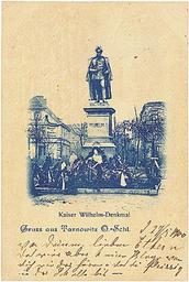 Keywords: Kaiser-Wilhelm I-Denkmal Tarnowitz (2).jpg pl Pomnik Cesarza Wilhelma w Tarnowskich Górach Pocztówka z ok 1898-1900 1900-12-31 own Gabriel trzy other versions PD-old Wilhelm I of Germany Wolności Square in Tarnowskie Góry