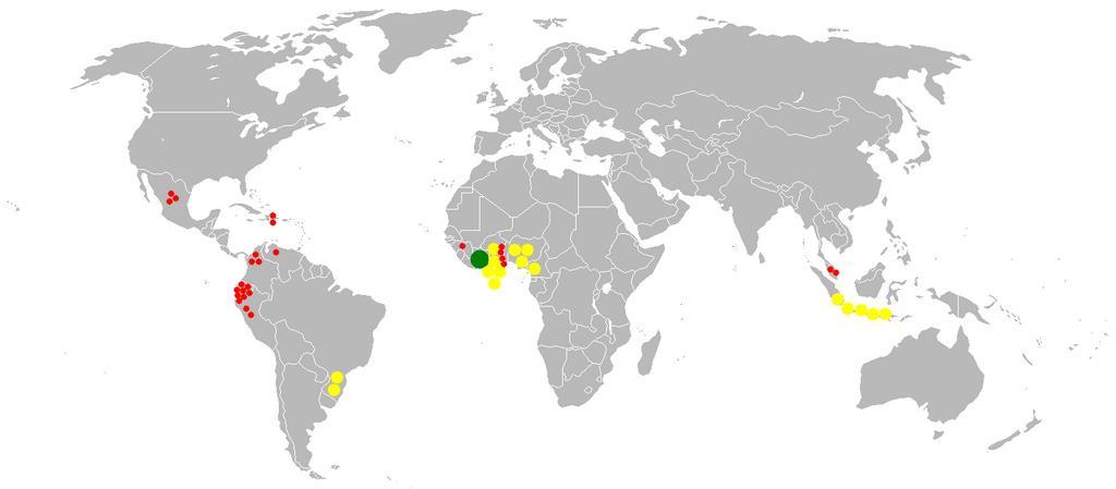 | Keywords: Kakaobohnenanbau 2005.PNG bubble map shows the global distribution of cocoa bean output in 2005 as a percentage of the top producer Côte d'Ivoire - 1 286 330 tonnes Legend Cocoa output in 2005 shown as a percentage of the top producer Cote d'Ivoire - 1 286 330 tonnes Notes on the technical realization and data source of the map en This map is consistent with incomplete set of data too as long as the top producer is known It resolves the accessibility issues faced by colour-coded maps that may not be properly rendered in old computer screens Data was extracted on 18th June 2007 from http //faostat fao org/site/336/DesktopDefault aspx PageID 336 009240 100 green fff500 10 yellow da251d 1 red 2005cocoa_bean PNG 50 2012-02-17 15 09 UTC 2005cocoa_bean PNG BlankMap-World png The map was made by User Vardion and adapted by User E Pluribus Anthony for Wikipedia derivative work Anwar saadat derivative work Generator deleting legend Generator 2005cocoa_bean PNG Vardion E Pluribus Anthony Anwar saadat and Generator Original upload log This image is a derivative work of the following images File 2005cocoa_bean PNG licensed with PD-author 2011-07-01T16 50 10Z Saibo 1425x625 59340 Bytes <nowiki>raw descs This bubble map shows the global distribution of cocoa bean output in 2005 as a percentage of the top producer Côte d'Ivoire - 1 286 33</nowiki> Uploaded with derivativeFX Bubble maps Cocoa production Economic maps of the world Maps with Robinson projection |