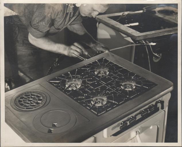 Keywords: kalamazoo public library michigan history photography stove company worker inspector gas burner factory manufacturing Interior of Kalamazoo Stove Company. Unidentified man inspecting a gas burner. For more information on the Kalamazoo Stove Company read: www.kpl.gov/local-history/business/kalamazoo-stove.aspx KPL catalogue number P-140. Interior of Kalamazoo Stove Company. Unidentified man inspecting a gas burner. For more information on the Kalamazoo Stove Company read: www.kpl.gov/local-history/business/kalamazoo-stove.aspx KPL catalogue number P-140. |
