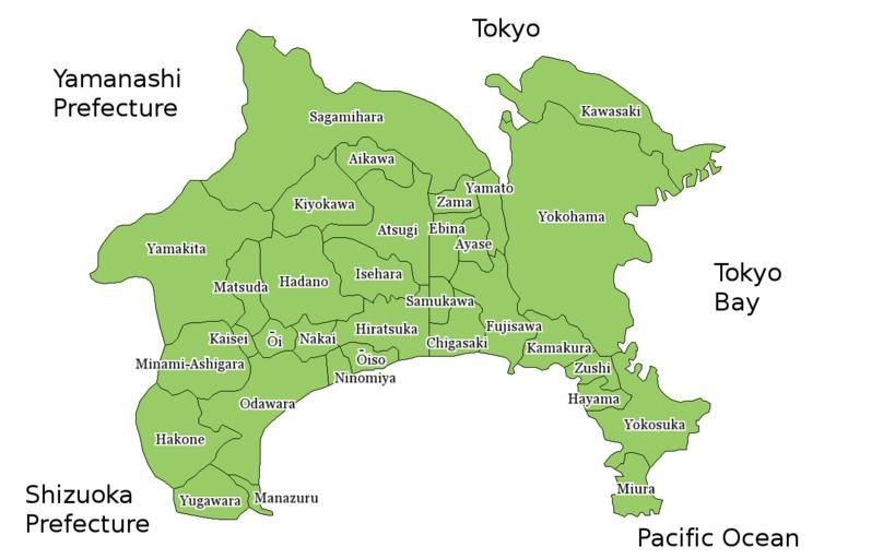 | Keywords: KanagawaMapCurrent.png Map of Kanagawa Prefecture Japan Thanks to Aoki Shigenobu and http //aoki2 si gunma-u ac jp/map/map html Colors from Image TokyoMapCurrent png by User Fg2 Maps of Kanagawa prefecture English language maps of Japan 2006-07-18 own assumed Akanemoto~commonswiki |